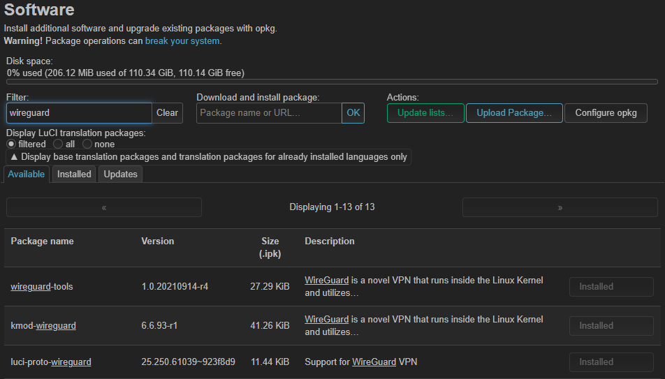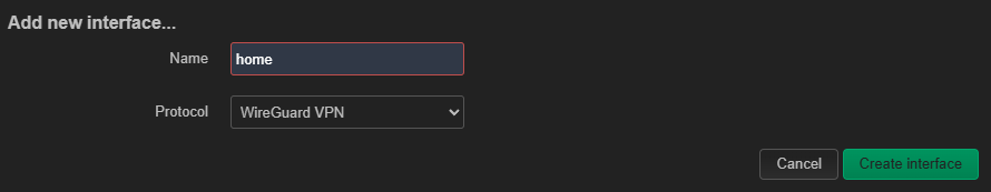 далее в «сеть-интерфейсы» создаем интерфейс, выбираем протокол wireguard